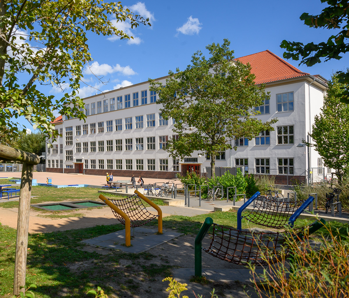 Das 1932 erbaute Schulgebäude beherbergt 382 Schüler*innen in 17 Klassen der Klassenstufen 5 bis 10 (Stand: August 2020). Die gerade abgeschlossene Sanierung des Schulgebäudes umfasst auch die Wiederherstellung der sportlichen Außenanlagen mit einem Kleinsportfeld.