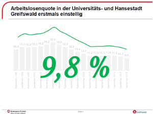 Arbeitslosenquote in Greifswald erstmals unter 10 Prozent