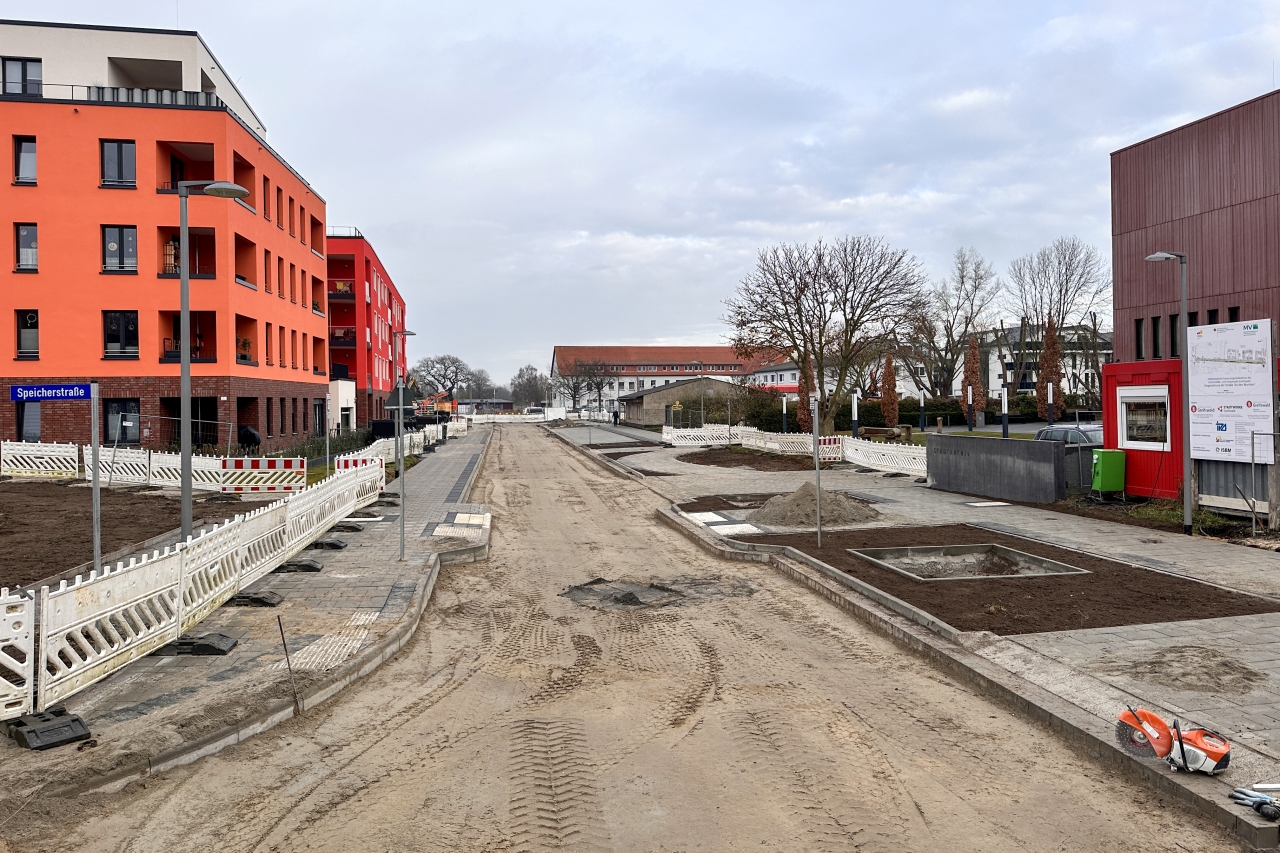 Anfang 2026 startet der dritte Bauabschnitt zwischen Haus Nr. 28 und der Wolgaster Straße – ebenfalls abhängig von der Witterung. Dieser Abschnitt wird nochmals unterteilt. Die Stadt kommt so den Wünschen der Gewerbetreibenden sowie der Anwohnerinnen und Anwohner nach. Zuerst wird zwischen der Speicherstraße bis zu Haus Nr. 22 gebaut. Diese Arbeiten sollen bis zum Frühjahr 2026 abgeschlossen sein. Danach folgt der restliche Abschnitt bis zur Wolgaster Straße. Wie bisher wird zunächst der alte Fahrbahnbelag entfernt, anschließend werden Abwasserleitungen und Kabel erneuert, bevor die Straße einschließlich der Gehwege neu aufgebaut wird.